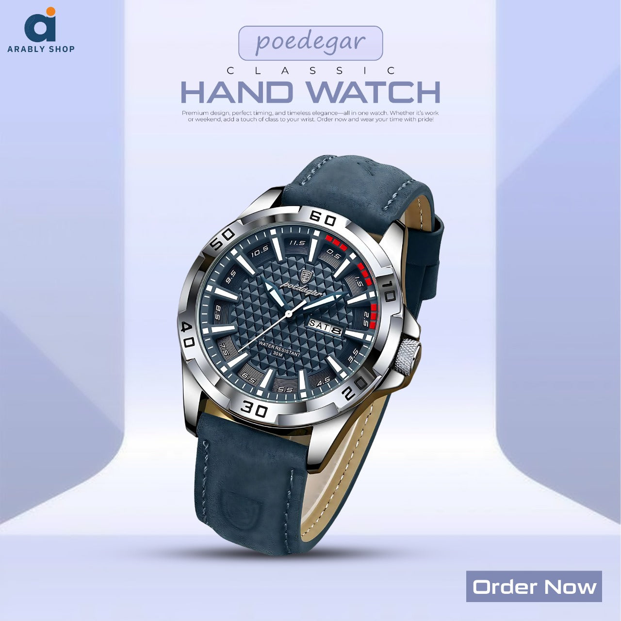 New POEDAGAR 895 Quartz 30 Miters Deep Waterproof Date Week Calendar Men Watch