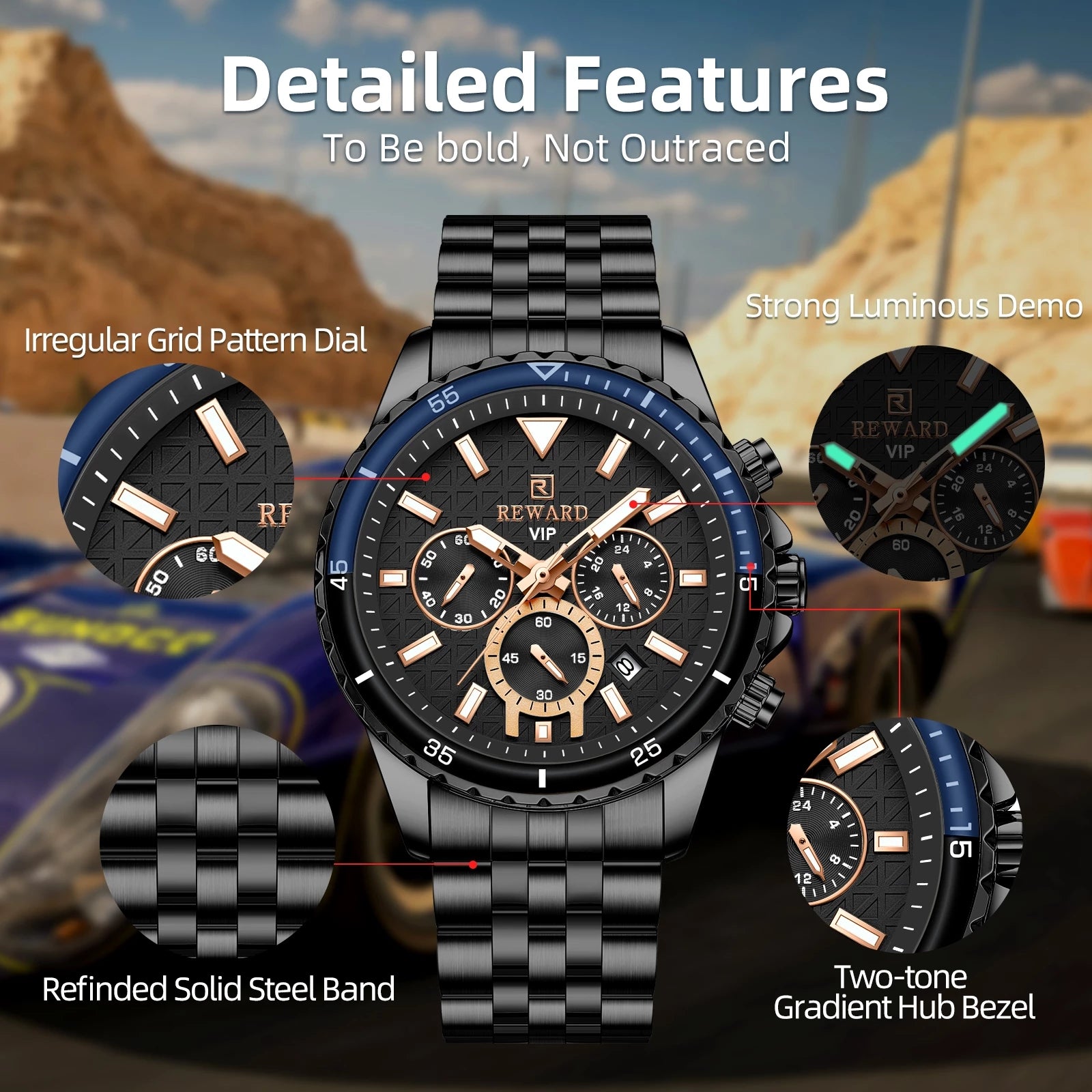 REWARD 81101 VIP Business High Quality Watch Original Stainless Steel Date Display Watch For Men's
